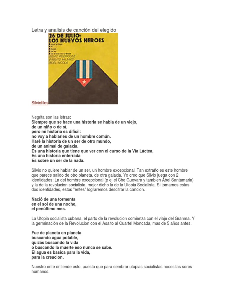 Letra Y Analisis De Cancion Del Elegido Che Guevara Homo Sapiens